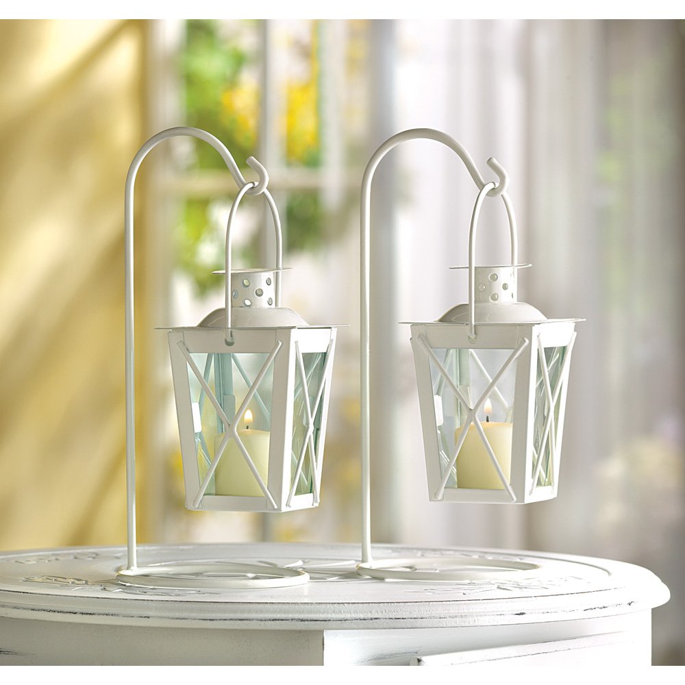 • These cute candle lanterns get a modern update from a bright white enamel finish, adding just the right festive touch to your next outdoor celebration! Quaint mini-lanterns recall the romance of the railroad; styled just like the signal lanterns that lined the tracks in the glory days of rail travel.